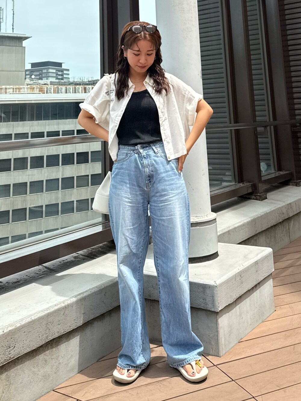 瀬川百花(Ungrid)のデニムパンツ「ハイウエストオーガニックコットンルーズデニム」を使ったコーディネート