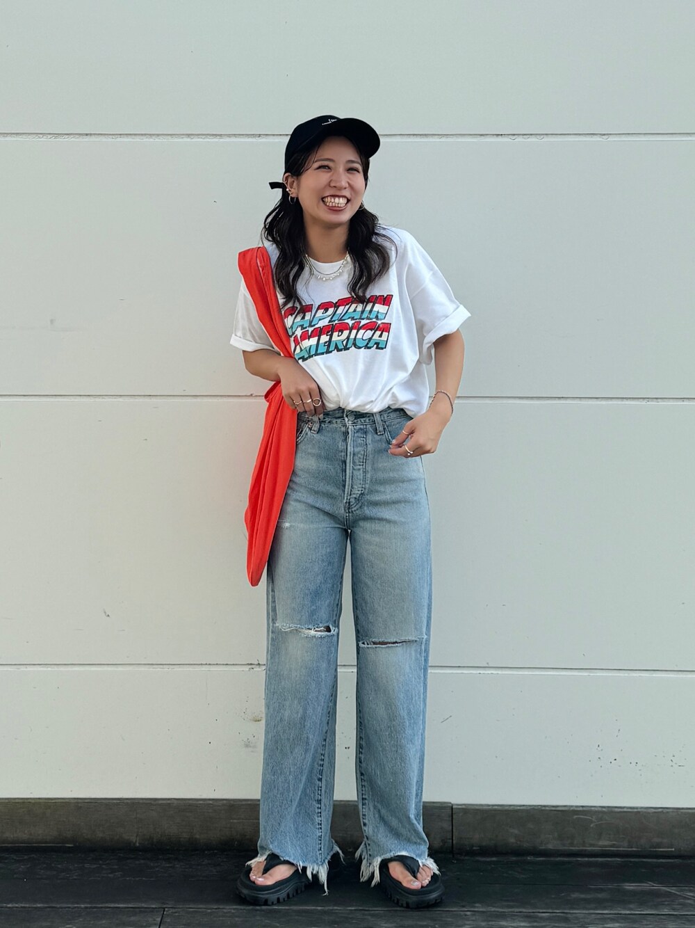 \\ instagram → @momoka_segawa_ // 《TEE》 お問い合わせかなり頂いている、 今季©MARVELから公開される 「Captain America」に合わせた グラフィックTee🇺🇸 古着感満載のお洒落なTシャツです☺︎ サイズ感かなりゆったりで メンズでも余裕です👍🏼 バックプリントも ©MARVEL好きにはたまらないデザイン✨ 即完売間違いなしな1着です🙏🏼 《DENIM》 ルーズなストレートデニム👖 夏らしいクラッシュと 裾の切りっぱなしデザインが 履くだけでお洒落見えさせてくれます◎ とにかく見た目と違って すごく柔らかくて履きやすいです☁️ シンプルなコーデに映える1本です💞