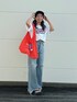 瀬川百花(Ungrid)のデニムパンツ「ヴィンテージクラッシュストレートデニム」を使ったコーディネート