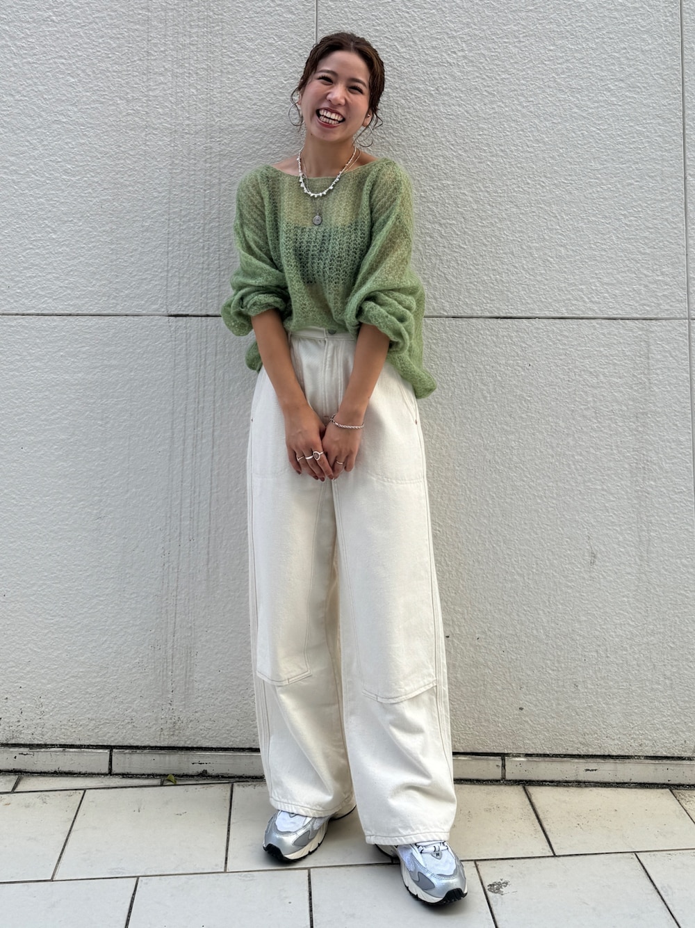 \\ instagram → @momoka_segawa_ // 《KNIT》 毎年人気の透かし編みニット🧶 今年は、アルパカ混の糸で作られていて 今までより柔らかくフワッとした ルーズな仕上がりになってます🐏 なにより良いところは 素肌に当たっても 全くチクチクしないところ💫 ヘルシーにキャミにニット着る時 いつもチクチク我慢していたのですが 今季のニットは我慢しなくて大丈夫🙆🏻♀️ 肌触り抜群です♡" 《DENIM》 ステッチが可愛いdenim👖💓 太めのストレートシルエットなので カジュアルコーデに合わせやすい✨ 156cmの私でSサイズ スニーカーで裾つかないくらいの ちょうど良い丈感です🙆🏻♀️ アイボリーとブラックの2色展開なので カラートップスとの相性も抜群です💯
