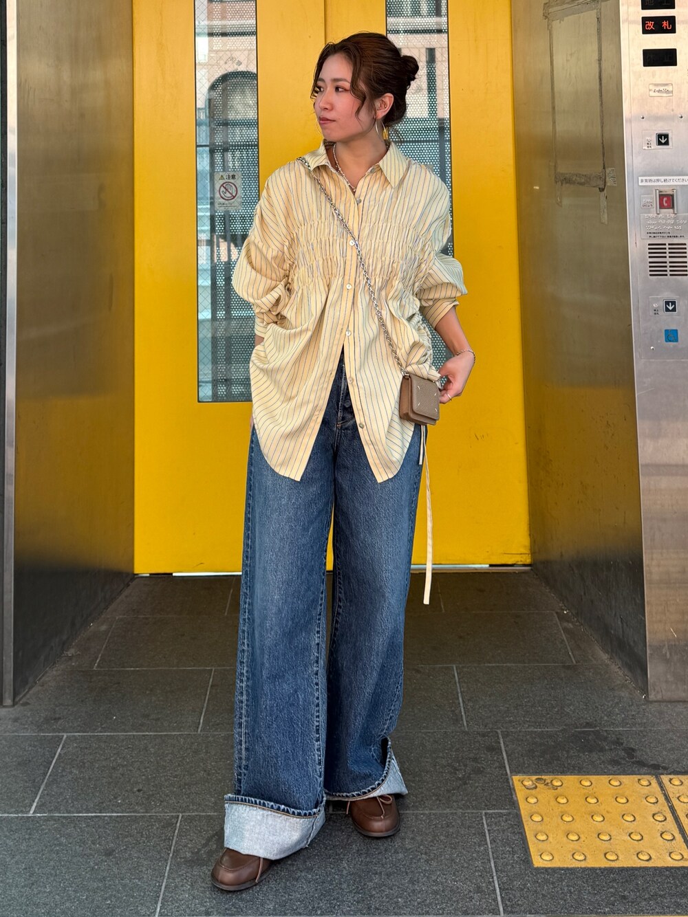 \\ instagram → @momoka_segawa_ // 《SHIRT》 360度ギャザーデザインが施されていて どこから見ても可愛いシャツ👔 サイドの紐でシャツの長さを調整できます◎ 程よく張りのある生地なので 羽織にもお使いいただけます🫶🏼 《DENIM》 トレンドの太めストレートデニム👖 ロールアップデザインなので 身長に合わせて丈調整が出来ます👍🏼 ボタンフライの部分の クラッシュデザインが可愛いので トップスをインして見せても◎ 見えなくてもデニムのシルエットが 可愛いのでゆるっと合わせも◎ 156cm 24inch 着用で ロールアップ調整なしで 床スレスレくらいです☺︎