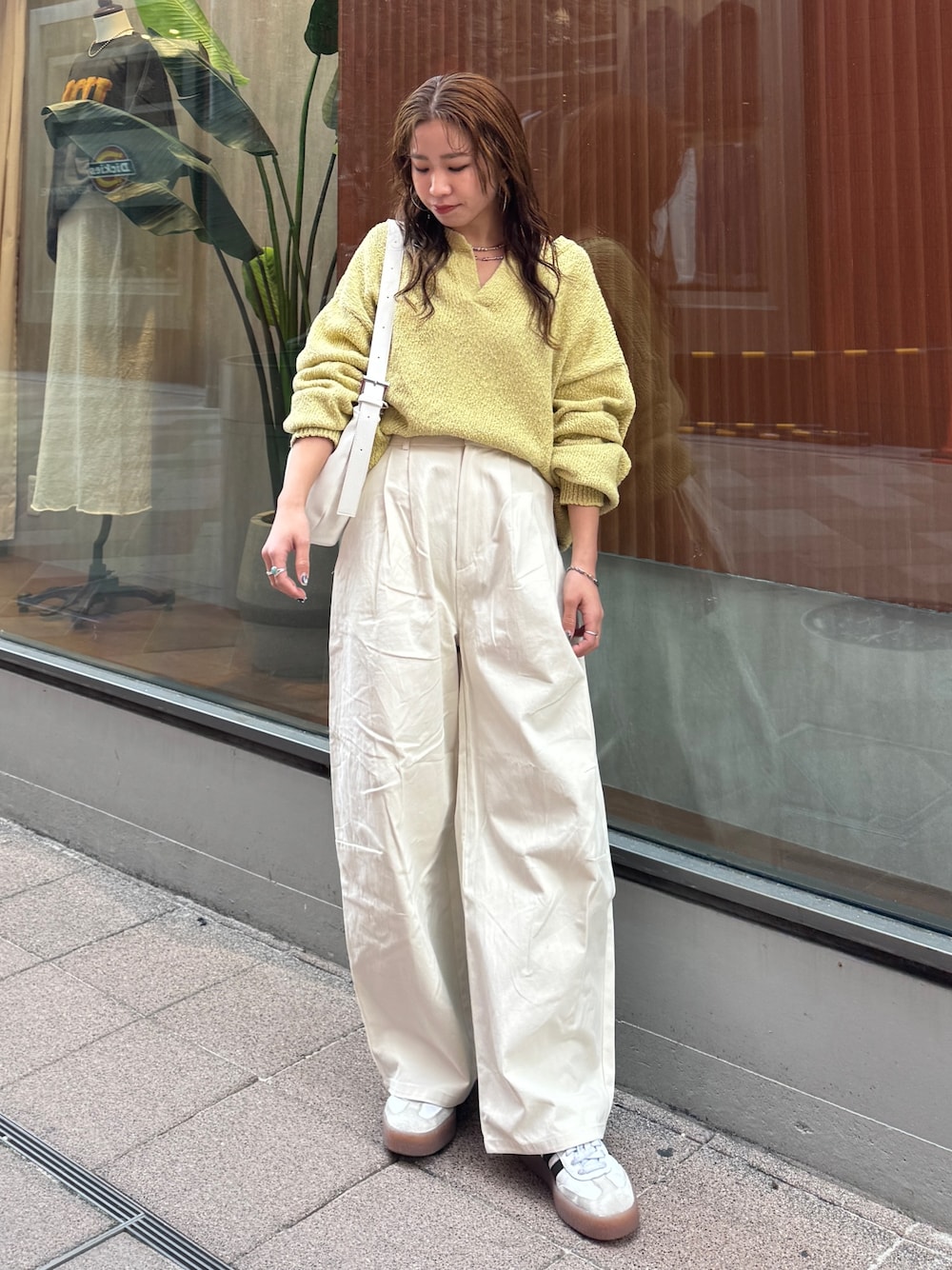 \\ instagram → @momoka_segawa_ // 《TOPS》 ゆるゆるシルエットが可愛い春ニット🌸 全体的にビッグシルエットで 袖丈も着丈も長めのデザインです☺︎ 深めのVネックにすることで 首元に抜け感がでるので 着られた感なく着ていただけます🧡 お袖のくしゅくしゅ感も可愛いです♡ 《BOTTOMS》 お問い合わせ多数✨ 入荷前から大人気のチノパン🎶 Ungridからは、 久しぶりのチノパンツの入荷なので カジュアル好きな方は 絶対好きなデザインです🧡 前に2タック入っているので、 普段カジュアルコーデじゃない方も トップスをスッキリしたもので 合わせていただくと 綺麗めコーデにも使っていただけます☺️ 156cm Sサイズ着用で 床スレスレの丈感です🙆🏻♀️ ウエストはボタンで調節可能です🙆🏻♀️