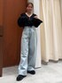 《BLOUSE》 楊柳生地のブラウスなので デニム合わせでカジュアルに着れる1着🎶 大きめなフリルとスッキリしたお袖が 上半身を華奢に見せてくれます💯 前のフリルの部分の紐を外すと カーディガンとしても羽織れます◎ 《DENIM》 美シルエット✨なルーズデニム👖 ウエストはフィット感のある ハイウエストで、 骨盤から下にかけて ルーズなシルエットになってます💓 筒周りはゆるっとしていますが、 ハイウエストなので メリハリが合ってスッキリ見えます💡 カラーも、薄いブルーと濃いブルーの 2色展開なのですが、 カラーによって全然見え方が変わるので 是非履き比べていただきたい1本👖 156cm 24inch着用で 床つくくらいの着丈です◎