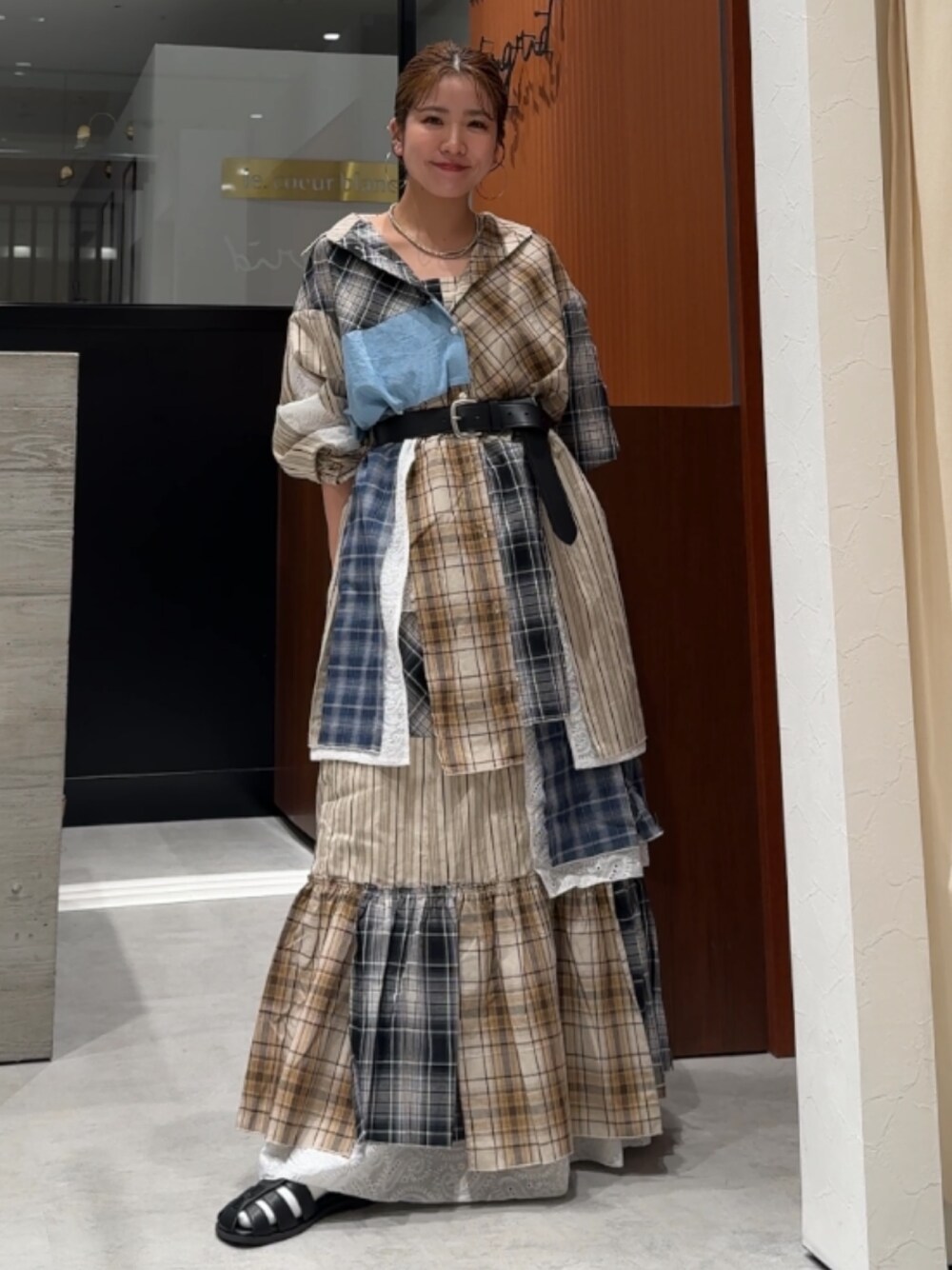 瀬川百花(Ungrid)のシャツ/ブラウス「ビッグシルエットリメイクチェックシャツ」を使ったコーディネート