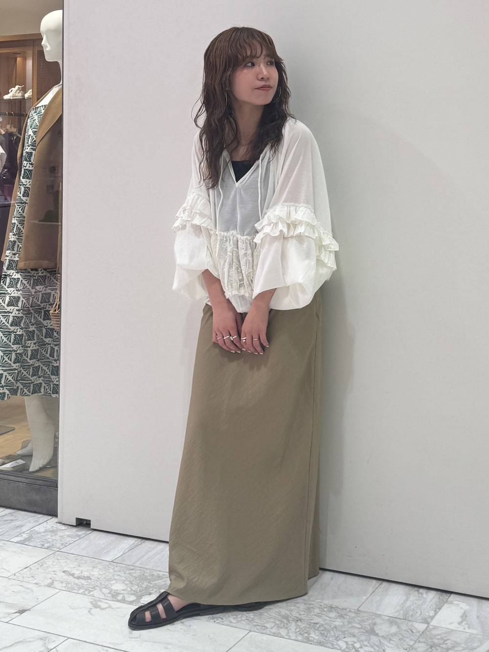 \\ instagram → @momoka_segawa_ // 《BLOUSE》 インドメイドのたっぷりとした ボリューム感が可愛いブラウス🇮🇳♡ 裾のフリルが動きがあって可愛いのと フリルの部分にビーズがハンド刺繍で 施されていて手の凝った1着🫶🏼 お袖と裾にゴムが入っています◎ 《SKIRT》 裾にかけてややフレアになる シルエット"美"なスカート✨ 下着が響かない程度のフィット感で 腰周りぴたぴたすぎないので 骨格ウェーブの私も履けました🙆🏻♀️ 裾はしっかり長めなので 156cm Sサイズで床スレスレです◎ 高身長の方も 長い着丈で履いていただけます🫡