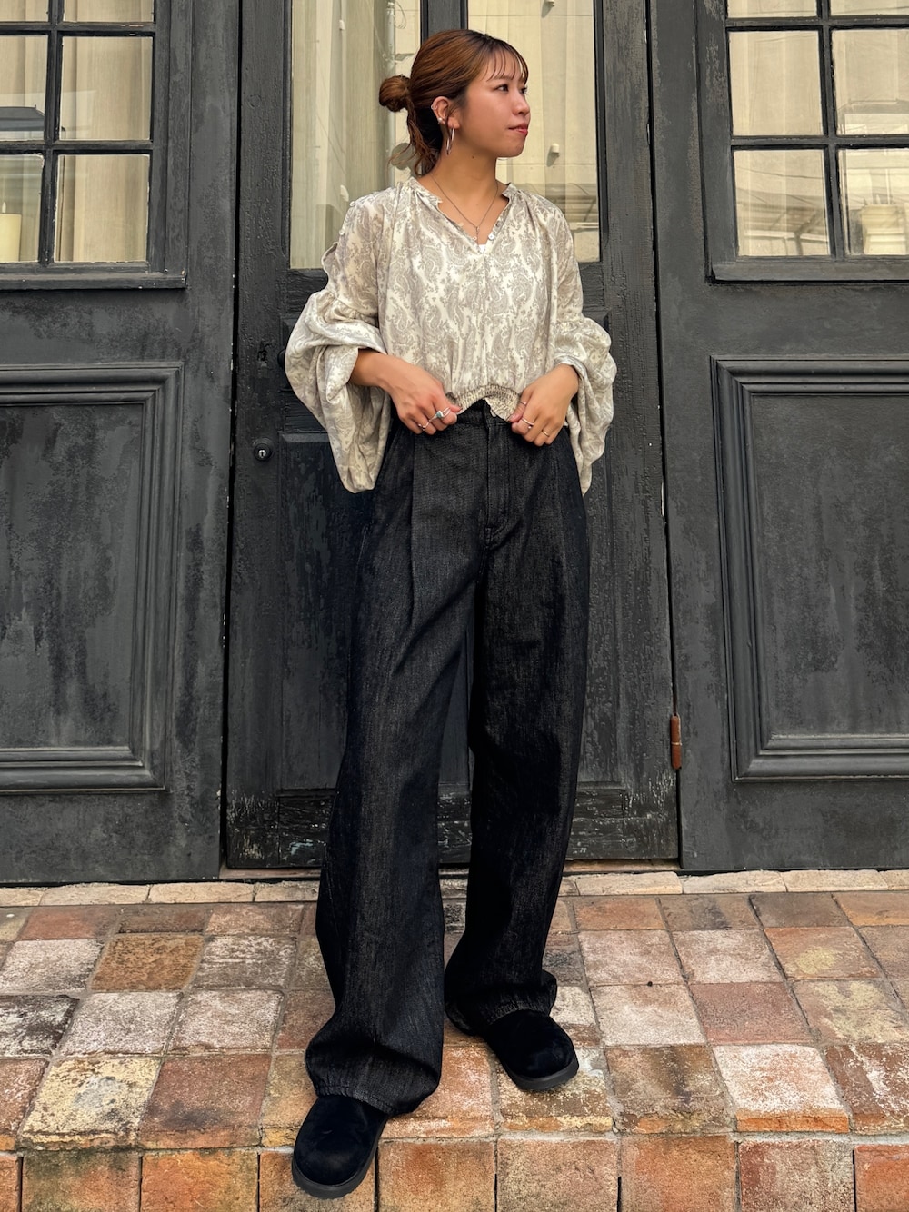 \\ instagram → @momoka_segawa_ // 《BLOUSE》 ペイズリー柄がお洒落なブラウス🫶🏼 お袖のボリュームが可愛いのと 肩の部分のボタンは開閉出来るので、 お好きなデザインで着用可能です🙆🏻♀️ 同柄のスカートと SET UPとして着ることも出来ます◎ 《DENIM》 ウエスト部分にタックが入った どこから見ても可愛いシルエットのデニム🧡 程よく硬さのあるデニムですが ウエストは少し緩めです🫡 156cm 24inchで床につくくらいの着丈です◎ シューズは、23cmでMサイズ着用です👟