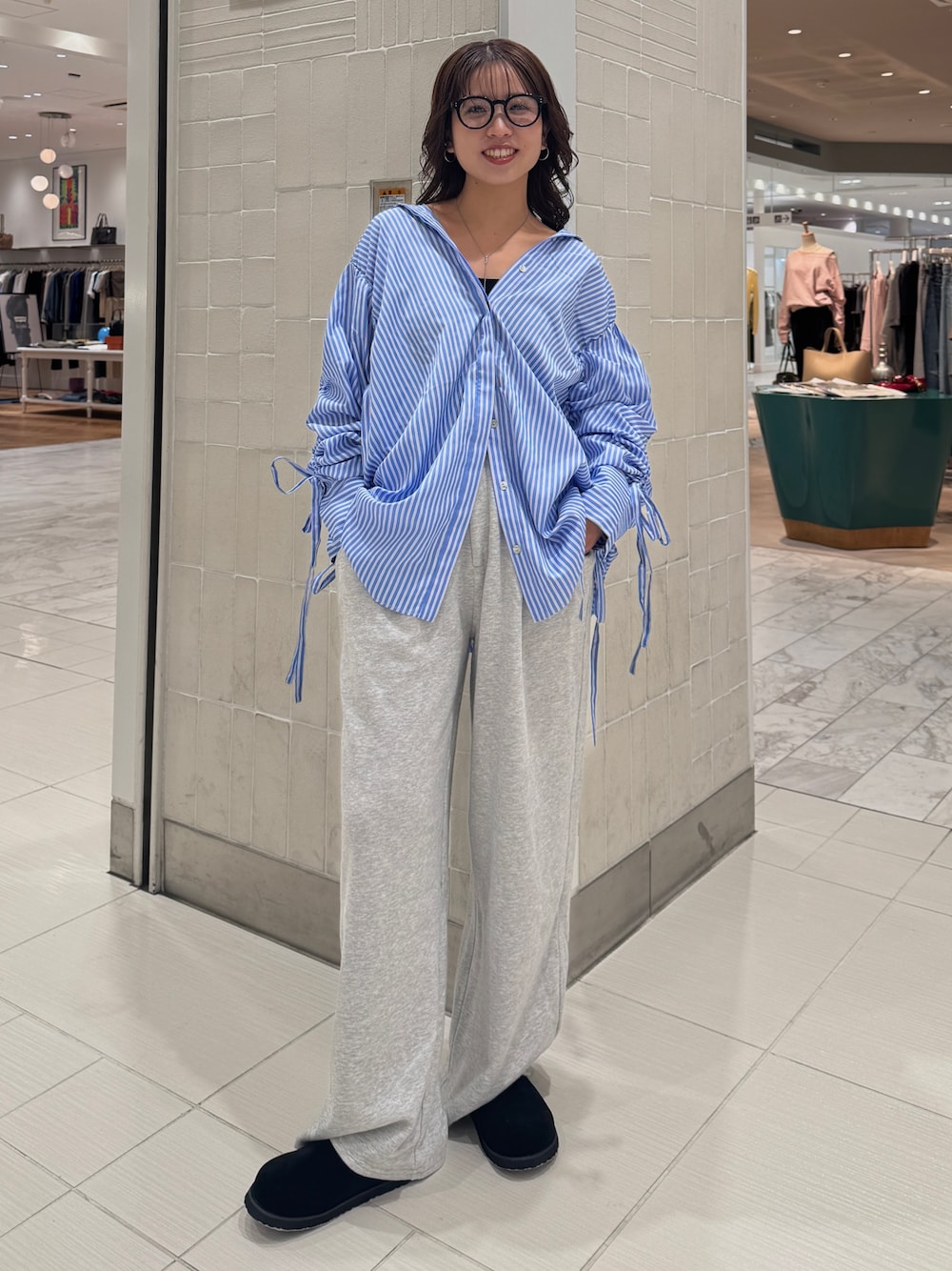 \\ instagram → @momoka_segawa_ // 《SHIRT》 サイドとお袖のギャザーデザインが可愛い♡" ギャザーの絞り方は お好きに変えられるので 袖丈も着丈も調整できます💯 《BOTTOMS》 ホックとチャックが付いていて 綺麗めに履けるスウェットパンツ🌟 タックも入っているので、 スラックスのようなシルエット🧡 スウェットパンツ履くと パジャマっぽくなる… とお困りの方にもオススメです☺️ 156cmで、床ギリギリの丈感です◎ シューズは、23cmでMサイズ着用してます👟