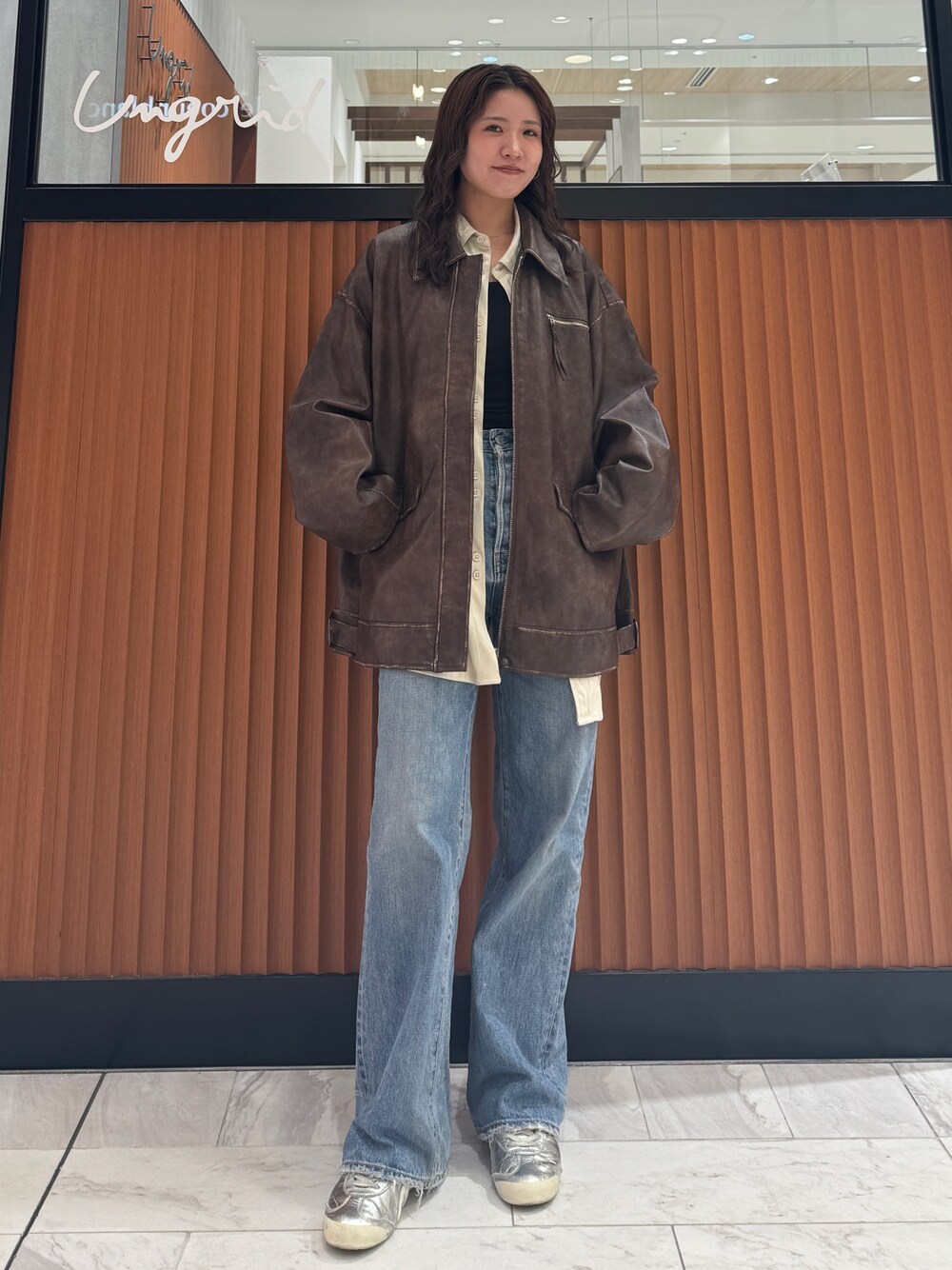 \\ instagram → @momoka_segawa_ // 《OUTER》 秋のマストアイテム✨ 質感が、ヴィンテージっぽくて より本革に近い印象に…♡ 生地は、分厚過ぎないので レザーシャツと同じ感覚で サラッと羽織っていただけます🙆🏻♀️ お袖周りもサイドもゆったりめなので 中に着込むことも出来ます🙏🏻! 156cmでお尻すっぽり隠れる着丈です◎ 《SHIRT》 スウェード生地の高見えシャツ✨ 大人な秋カラーで テロっとした落ち感のある素材です◎ シワにもならないので普段使いもしやすく、 手に取りやすい1着です🌟 《DENIM》 念願の再入荷👖✨ ヴィンテージ感強めなカラーが ありそうでないお洒落denimです🎶 ハイウエストなので、 ショート丈のトップスにも◎ 裾にさりげなくクラッシュが入っていて 細かい所までお洒落point詰まってます🙌🏼 156cm 24inchで 床スレスレの丈感です👖 スニーカーの上で くしゅっとデニムの裾がたまる感じが めちゃくちゃ可愛いです💕