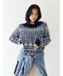 瀬川百花(Ungrid)のニット/セーター「【WEB限定】オフショルジャカードニット」を使ったコーディネート