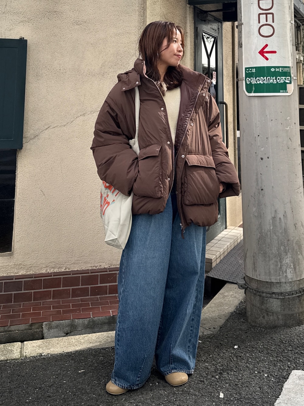 \\ instagram → @momoka_segawa_ // 《OUTER》 大きめのフードがPOINTの 可愛いダウンです♡ ニット着た状態でチャックを閉めても ゆとりがあるくらい ゆったりしたシルエットです☺️! ボリューム感と丈感は サイドについている絞りで調節可能◎ カラー展開もお洒落ですよっ🌟 前のポケットは 横からも手が入れられます👏🏼 ダウン80%も入っているので無敵です✨ 《KNIT》 昨年も大人気ニット🧶" ショート丈ですが、 ハイウエストのボトムスや スカートにinせず着ても バランス良く着ていただける丈感です🌟 チクチク感も少ないので お肌弱い方も、 安心して着て頂けますよ🫶🏼 《DENIM》 ウエスト部分にタックが入った どこから見ても可愛いシルエットのデニム🧡 程よく硬さのあるデニムですが ウエストは少し緩めです🫡 156cm 24inchで床につくくらいの着丈です◎