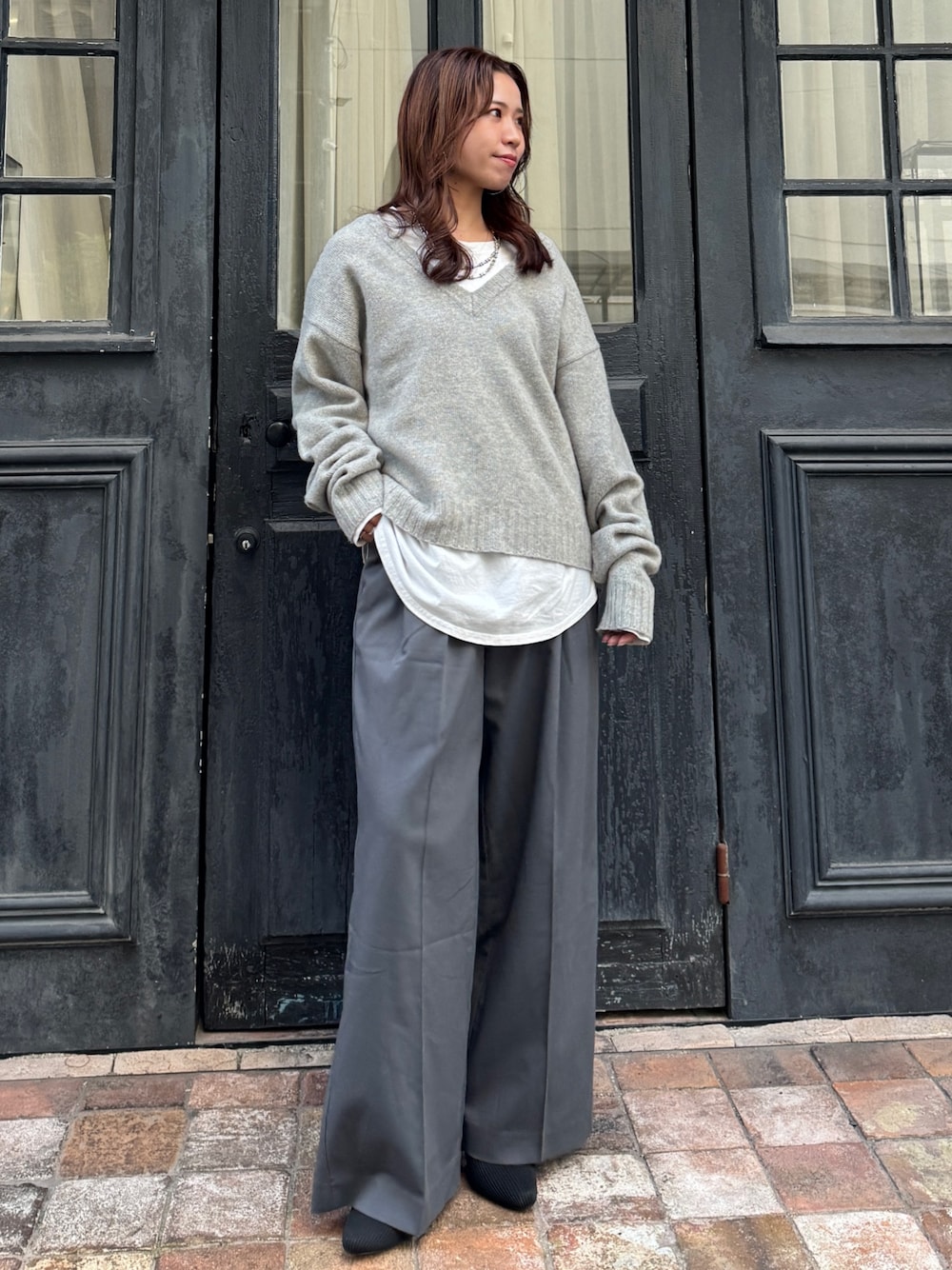 \\ instagram → @momoka_segawa_ // 《KNIT》 ラムウール100%のVネックニット🐑🧶 厚みはそんなにないのですが、 ラムウールなので暖かさ💯 《TOPS》 Ungridの隠れた名品✨ 再入荷する度に完売🙇🏼♂️ 私も3枚リアルバイしてます🤣 鎖骨に沿った首周りが 重ね着した時に出過ぎず綺麗🌟 お袖も程よくゆとりがあって、 裾は丸く切ってあるので 裾から見えるシルエットも綺麗です👏🏼 重ね着するものに困ったら これ着とけば間違いなしです🎶 《BOTTOMS》 ウエストが総ゴムなので楽に履けるのに タックが入っているので キチンと感が出るパンツです🙆🏻♀️ シワになりにくく、 きれいめな印象で着られる素材です☺︎ デイリーにもオフィスシーンにも馴染む 万能なパンツです