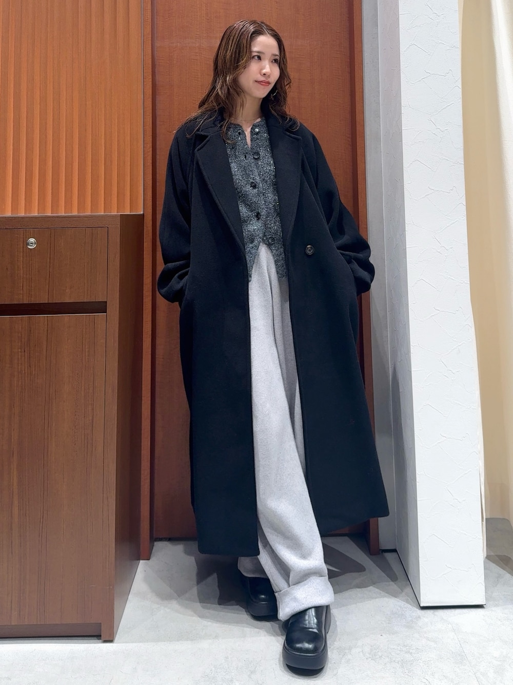 \\ instagram → @momoka_segawa_ // 《OUTER》 普段使いでも、オケージョンでも 着回せる万能なチェスターコートが ブラッシュアップして今年も入荷🫶🏼 ルーズなシルエットですが、 肩の切り返しの折り目がないので 肩周りゴツく見えないです👏🏼 しっかり足元まで長さがあるので 体全体の縦のラインが綺麗に見えて スタイル良く見えます✨ ウールも入ってるので 防寒性もしっかり備わってます🫡 ロングコートは 羽織るだけで様になるので 持ってて間違いなしですよっ🔥 《CARDIGAN》 スパンコールが織り込まれた ラメニットカーディガン🧶✨ 丈感も短すぎず長すぎず 合わせやすい着丈です◎ 私は、襟が苦手なので 襟を内側に折り返してノーカラーとして 着てます🙆🏻♀️♡ 《BOTTOMS》 暖かくて楽なニットパンツ🧶 こういうニットパンツって、 ぴちっとしたものが多く ゆったりお尻隠れるトップスでしか 合わせられなかったんですけど このパンツは、お腹周りから 足元にかけて全部ゆるっとしてて 下着のラインも出ないので めっちゃおすすめです🌟 短めのトップスでも合わせられます👌🏼 丈は156cmの私で踏むくらい長めですが 厚底のスニーカーで合わせると スニーカーの上で止まるので 厚底のスニーカーやブーツで 合わせるのがオススメです👟♪