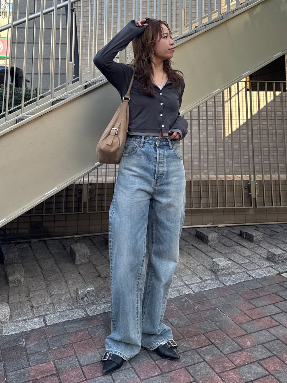 瀬川百花(Ungrid)のデニムパンツ「ハイウエストルーズストレートデニム」を使ったコーディネート