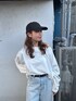 瀬川百花(Ungrid)のTシャツ/カットソー「ボートネックビックシルエットロングスリーブTee」を使ったコーディネート