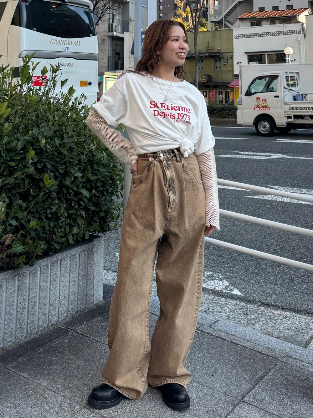 瀬川百花(Ungrid)のデニムパンツ「ブリーチルーズデニム」を使ったコーディネート