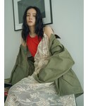 瀬川百花(Ungrid)のブルゾン「レザードッキングミリタリーブルゾン」を使ったコーディネート