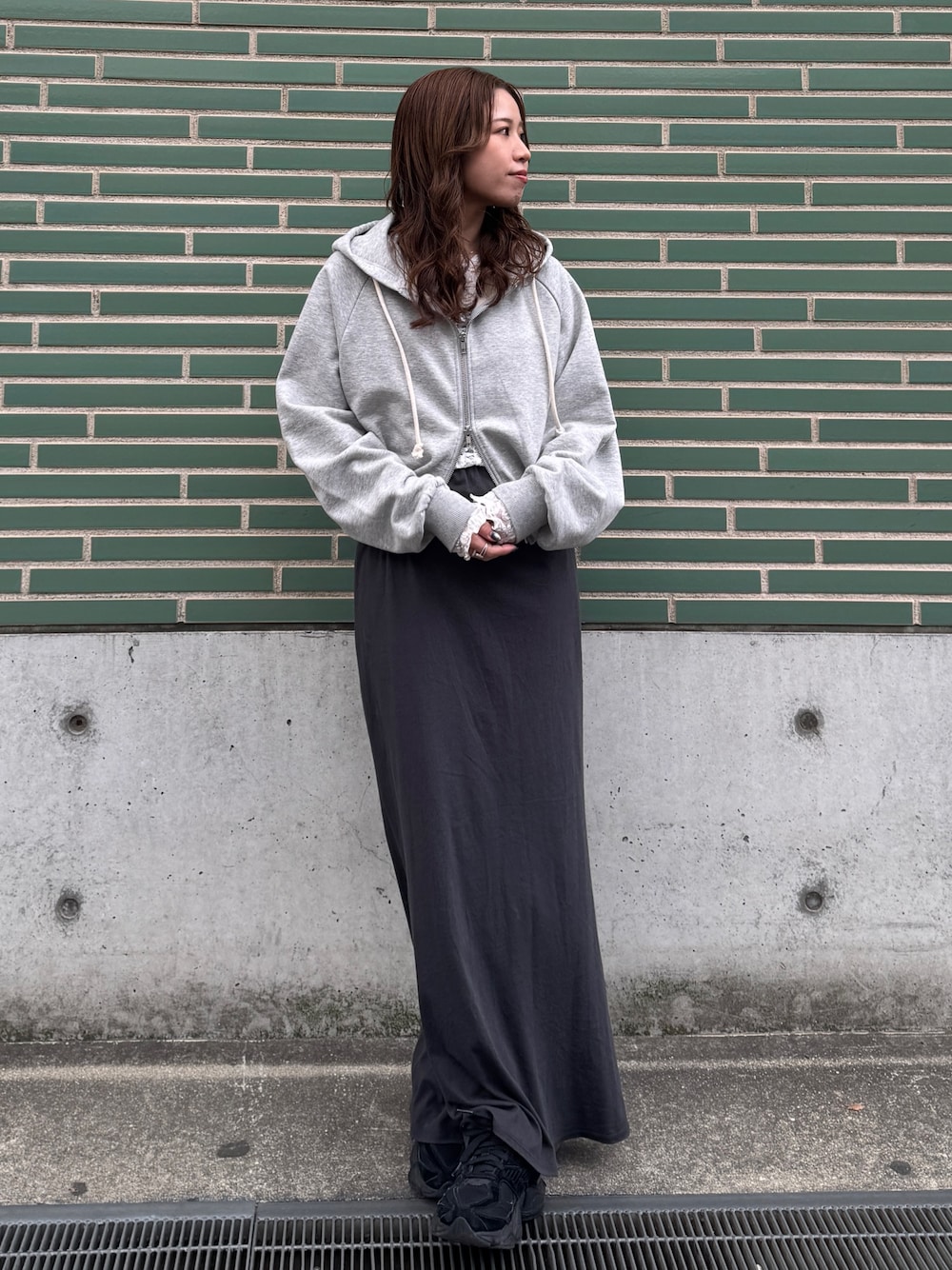瀬川百花(Ungrid)のパーカー「ダブルジップショートパーカー」を使ったコーディネート