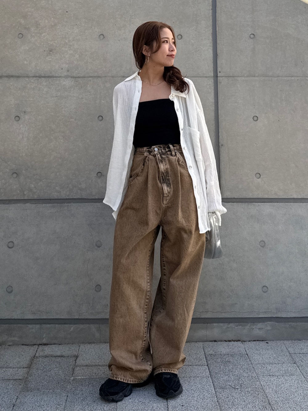 \\ instagram → @momoka_segawa_ // 《SHIRT》 毎年大人気! 春夏大活躍間違いなしの 楊柳シャツ🍃 麻とレーヨンのお素材なので、 むしむしする梅雨時期も 暑い夏の時期もサラッと着れます💓 ボタンもシェルになってて 細かいデザインも可愛いんです🐚 《DENIM》 ブリーチで抜いた後にヴィンテージ感のある カラーをのせたお洒落デニム👖🤎 腰履きでも履けるように あえてルーズ感をしっかり出したシルエット🗣️ ウエストに入ったタックも 立体感が出てお洒落です☺︎ サンプルなので25inch着用ですが、 156cm24inch着用で床につく長さです◎