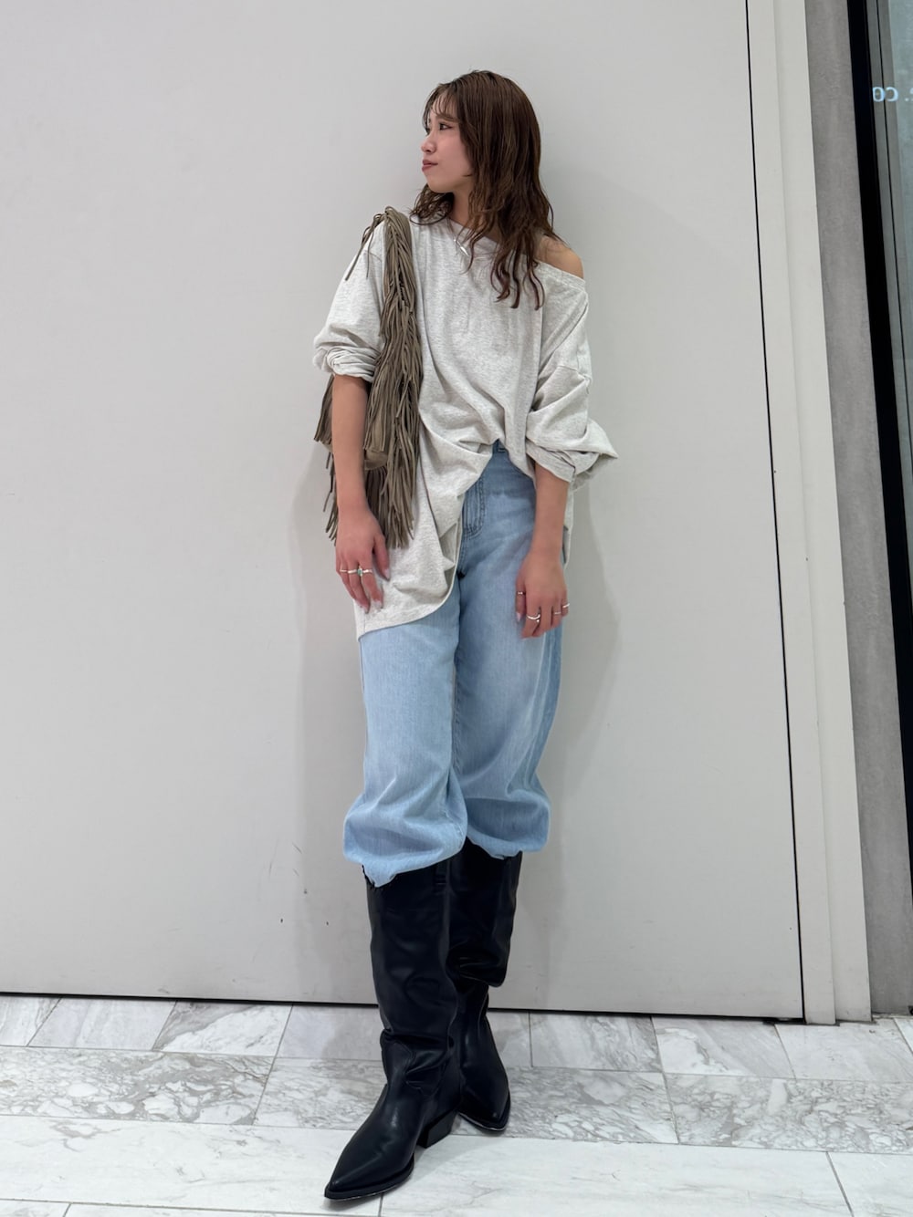 \\ instagram → @momoka_segawa_ // 《TOPS》 待望のビッグシルエットロンT🌟 首周りがボートネックで 女性らしい抜け感が出るのと、 他にはないビッグシルエットが可愛すぎる♡ 2色、3色買いの方多いです✨ 《DENIM》 Ungrid史上最強の柔らかさと薄さ!👖 実際に手に取ってくださるお客様も 衝撃の肌触りで驚いてます🫨! ストレートシルエットですが、 ピチピチにならず程よくゆとりがあります🙆🏻♀️ お尻のポケットも 中央寄りに付いているので ヒップアップ効果もあり!✨ 夏はこのデニム以外履けなくなりそう…🤤 156cm 24inch着用で 床につく長めの丈感です◎ ブーツは、23cm Mサイズ着用☺︎