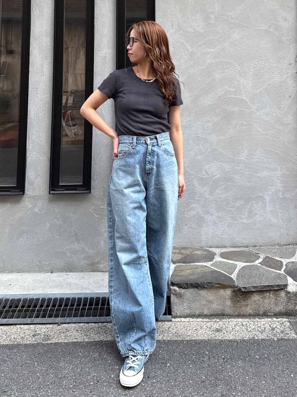瀬川百花(Ungrid)のデニムパンツ「カーブルーズカラーデニム」を使ったコーディネート