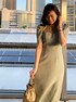 シンプルなデザインでも目を引くドレス。 胸元の透け感や、パフスリーブが女性らしさを演出してくれます。私はミントのカラーを選んだのですが、太陽光に当たると光沢感がより綺麗でした。袖が長めなので、二の腕がカバーされるのも嬉しい!下半身大きめの私でも、Iラインの広がりすぎないシルエットなので、体のラインをスッキリ見せてくれました。結婚式や2次会以外にも、パーティーや女子会、お食事会にも◎ 撥水加工を施しているアイテムで、ドレスアップする特別な日、飲み物をこぼしてしまった!急に雨が降り始めた!など、トラブルが起きてもお気に入りのドレスを汚す心配は要らないので嬉しいですよね♡