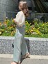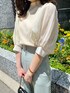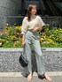 スタッフ一押しのパンツを取り入れたコーデをしてみました! 今回私はSで履いてますが、Mで今年っぽくゆるっと着るのもおすすめです。 幅広な切り返しがお腹周りをすっきり見せてくれるので、骨盤の張りが気になる方にもおすすめ! ボトムスが細めのシルエットなので、トップスには少しボリュームをプラス。ふんわりとした袖が女性らしさを出してくれるので、フェミニンになりすぎないようにパンツ合わせにしてみました。 足元はクリアサンダルでぬけ感をプラス!