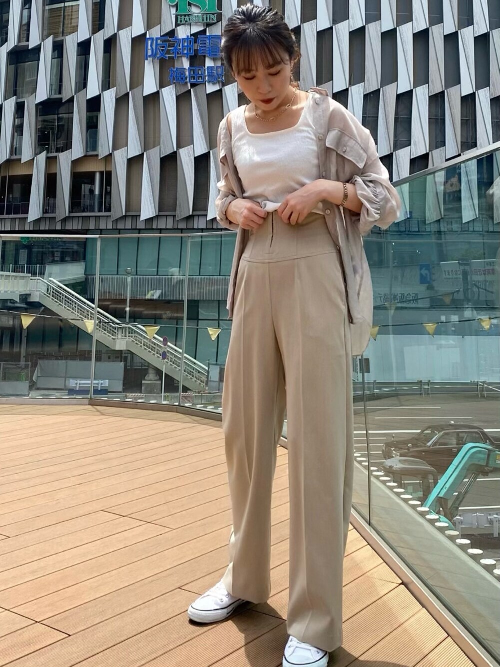 大人綺麗なパンツstyling! シアーシャツは1枚あると、春先から真夏の羽織、旅行用、、、、などなどとっても使いやすい。お尻が隠れる丈感も嬉しい◎ こちらのパンツは入荷してから形が綺麗過ぎるとスタッフの間でも話題のアイテム。163cmの私でMサイズで踵にかかるくらいの丈なので、ゆるっと着たい160cmの方はMサイズ。すっきり着たい方はSでも大丈夫です。 パンツスタイルでも透け感のあるシアーシャツを合わせるとどこか女性らしさも残るので、普段カジュアルスタイリングはあまり着ない方でも、挑戦してみていただきたい夏におすすめのスタイリングです。