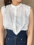 胸元のボウタイが特徴的なブラウス。大きめのリボンを作るとガーリーな雰囲気にもなりトレンド感も◎ 私は甘くなりすぎないようデニムとスニーカー合わせのスタイリングにしてみました。 ボウタイは取り外し可能ですので、シチュエーションに合わせて雰囲気をガラッと変えて頂けます! ノースリーブですが、肩周りはしっかりカバーしてくれるデザインなのも嬉しいですよね!