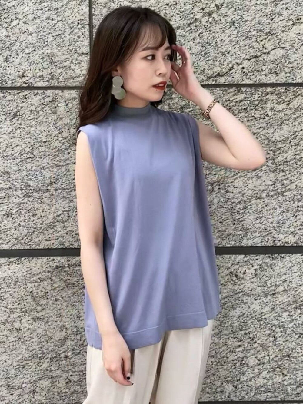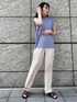 ショルダーのタックデザインが肩から腕のラインをきれいに見せてくれるトップス。レーヨン混の糸を使用しているので着心地もサラッとしていて涼しいです◎ トロンと落ち感があるので、パンツと合わせたアウトスタイルも綺麗に決まります!スカートスタイルにインしても、もちろん相性ばっちりで万能に着回しできるトップスでかなり使える予感、、、 今回合わせたのは、ウエストゴムの楽ちんなパンツ。光沢感と透け感があり、カラーのトップスが映えて夏らしいスタイリングが気分にぴったり。