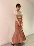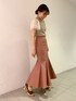 取り外し可能なサスペンダーが付いた着回し力抜群のマーメイドスカート。 膝下にマチが入っているので、フレアに広がり歩くたびにマーメイドラインがより綺麗に見えます! くすみピンクはカジュアルにもフェミニンにも合わせやすく、おしゃれに見えるカラーなのでおすすめ。甘くなりすぎず大人っぽく着ていただけます◎ Tシャツ、ブラウスをインしたスタイリングがおすすめですが、高身長の方はペプラムデザインのとっぷすや、オーバーサイズのニットをアウトで着るのもおすすめです!