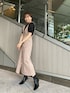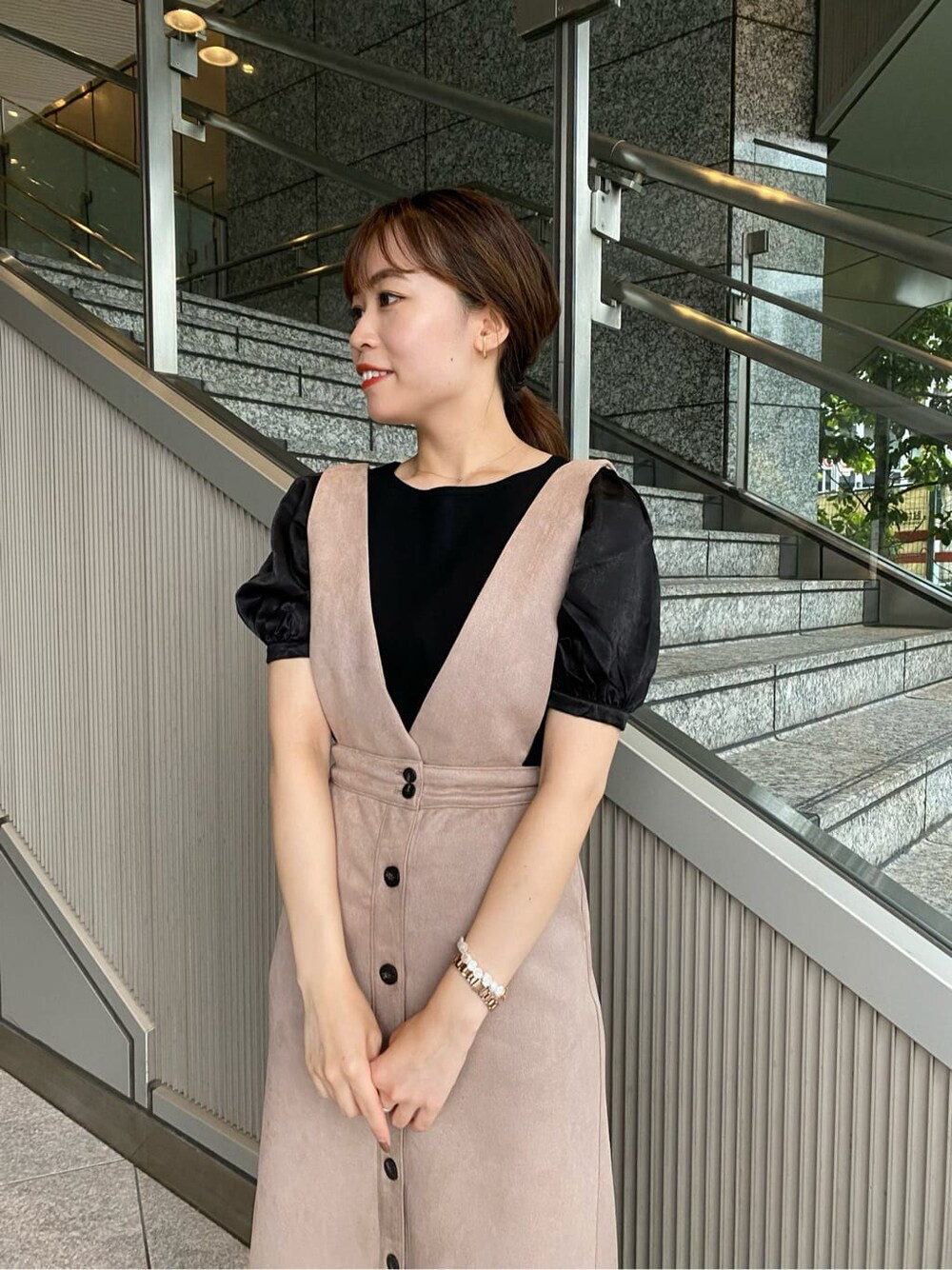 2wayの着こなしが楽しめるジャンパースカート。秋らしいフェイクスウェードの生地はフェミニンにもカジュアルにも着回ししやすい◎ ジャンパースカートとして着る時は首の詰まったニットやブラウスをレイヤードするのがおすすめ! 腰回りをすっきりと見せてくれる綺麗なAラインなので、骨盤が張っている私でも抵抗なく着れました。