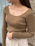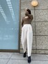 秋のオフィススタイルにもおすすめな、テーパードパンツとニットのシンプルコーデ。 大きめのタックが入ったパンツは腰回りゆったりなのにスタイルアップできるスッキリとしたシルエット。ニットはデコルテラインがスッキリと見え、自然と女性らしさを出してくれます。袖のボタンの開け具合でも雰囲気を変えれるので、1着で2着分の着こなしが楽しめるのも魅力的! 合わせたコートは、本当に着心地が軽くて、アームが程よく余裕もあり中にたっぷり着込めるコートなので肌寒い季節にはとっても活躍しそうです!