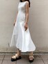 2wayで着れるワンピース。 梅田エスト店ではwhiteがとっても人気! 夏は白ワンピ着たくなりますよね。 体のラインは拾いすぎないのに、くびれができるシルエットなので白でも膨張しません。 普段ワンピースはMサイズを選ぶのですが、こちらはゆったりとしたサイズ感で、Sでも綺麗に着れました。165cm以上の高身長さんはMの方がバランス良くきていただけると思います◎ シアートップスを合わせると気になる二の腕も隠せるのが推しポイント。