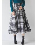 秋らしいチェック柄がお洒落なスカートを取り入れたコーデ。 合わせているお気に入りのブラウスは襟が大きめなので、小顔効果抜群! 肩の位置も誤魔化せるので肩幅が気になる方にもおすすめです。 ブラック×グレー系の配色のチェックスカートは派手になりすぎないので、柄が苦手な方にも挑戦していただきやすいです◎ ベーシックなタートルや、まだ暑い今の時期にはTシャツを合わせても可愛いですよ!