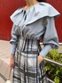 秋らしいチェック柄がお洒落なスカートを取り入れたコーデ。 合わせているお気に入りのブラウスは襟が大きめなので、小顔効果抜群! 肩の位置も誤魔化せるので肩幅が気になる方にもおすすめです。 ブラック×グレー系の配色のチェックスカートは派手になりすぎないので、柄が苦手な方にも挑戦していただきやすいです◎ ベーシックなタートルや、まだ暑い今の時期にはTシャツを合わせても可愛いですよ!