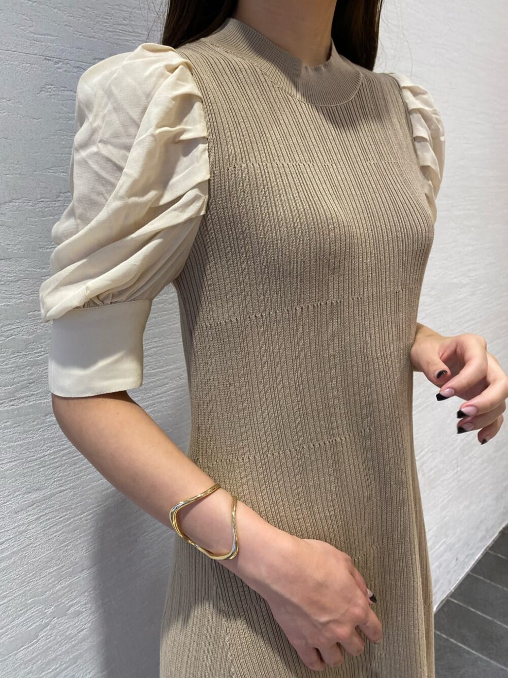 林(LAGUNAMOON)のワンピース「タックスリーブドッキングニットワンピース」を使ったコーディネート