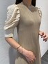 締め付けなく、楽に着れるのにくびれが作れるワンピース。 体のラインを拾わずに細見えを叶えてくれます。 5部袖のパフスリーブは二の腕を隠しつつ女性らしい印象に◎ 着るとニット特有の重みも感じないので肩凝りさんやお子さんとのお出かけが多い方にもぴったりです!