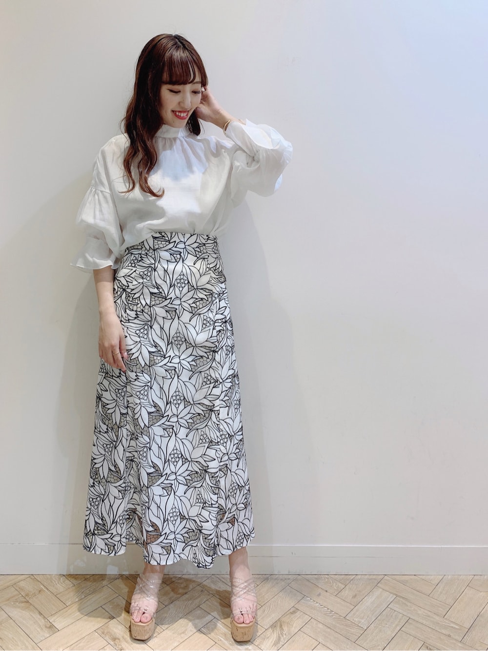 春らしいサラッとしたブラウスとカットワーク刺繍スカートで大人フェミニンコーデに仕上げました♡ブラウスはショルダー部分で肌見せも出来る2WAYタイプ♪肌見せ具合は調節出来るのも嬉しいポイントです♥透け感があるのでレースキャミインナーと一緒に合わせるのがオススメ✩スカートはカットワーク刺繍なので大人っぽく女性らしさアップです♪♪ カジュアルスタイルにも合わせやすいです✩.*˚
