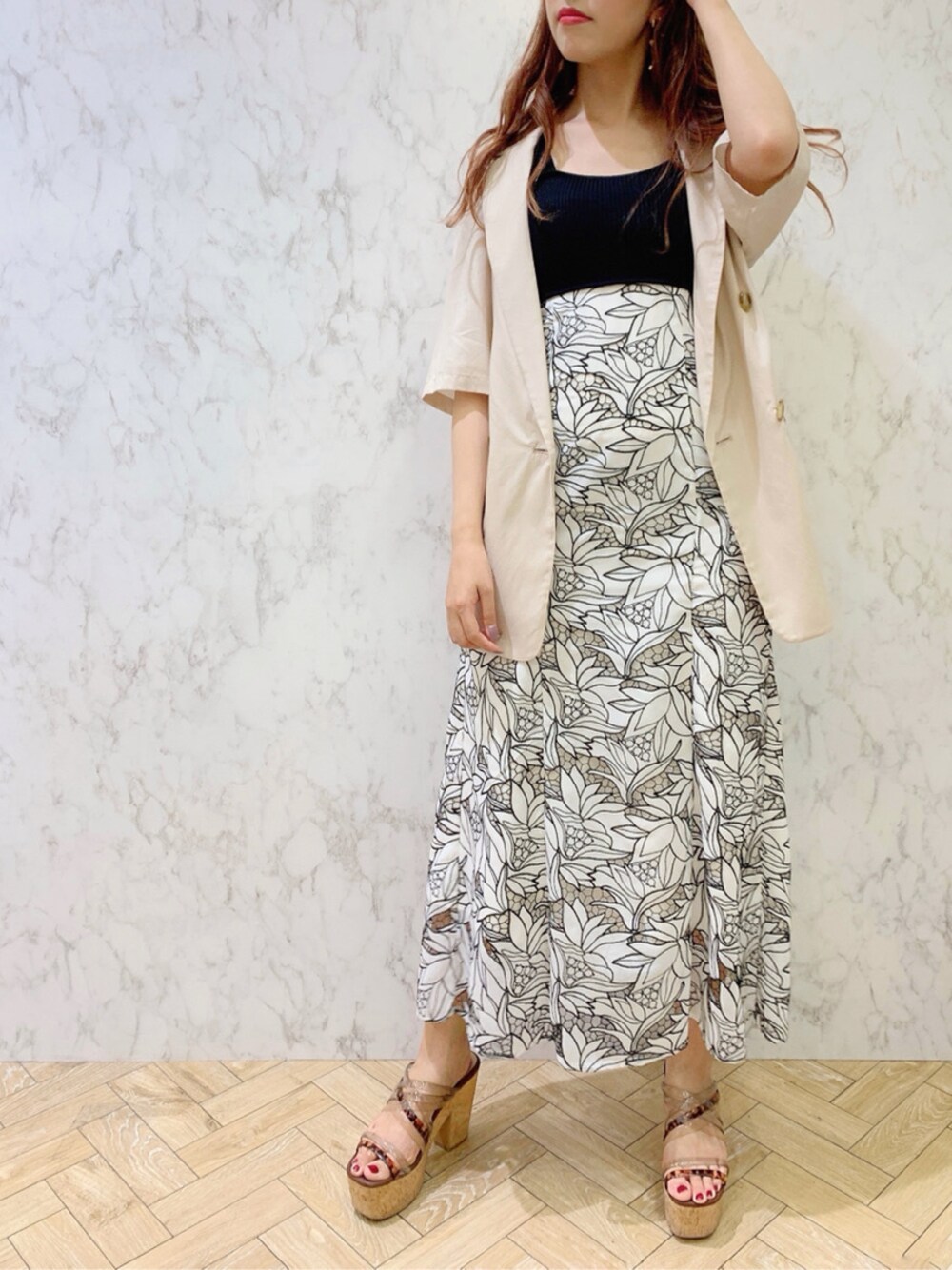 完売していたジャンスカが再入荷!!カットワーク刺繍が大人っぽく女性らしく見えます✩ウエストの切り替えが胸下なので脚長効果抜群なワンピース♡ニットビスチェ部分は少しゆとりがあるので気になる方はインナーを着て頂くのをオススメします! ジャケット合わせはもちろん、シアーシャツで合わせても今年らしくおしゃれ見え間違いなしです︎︎︎︎︎☺︎
