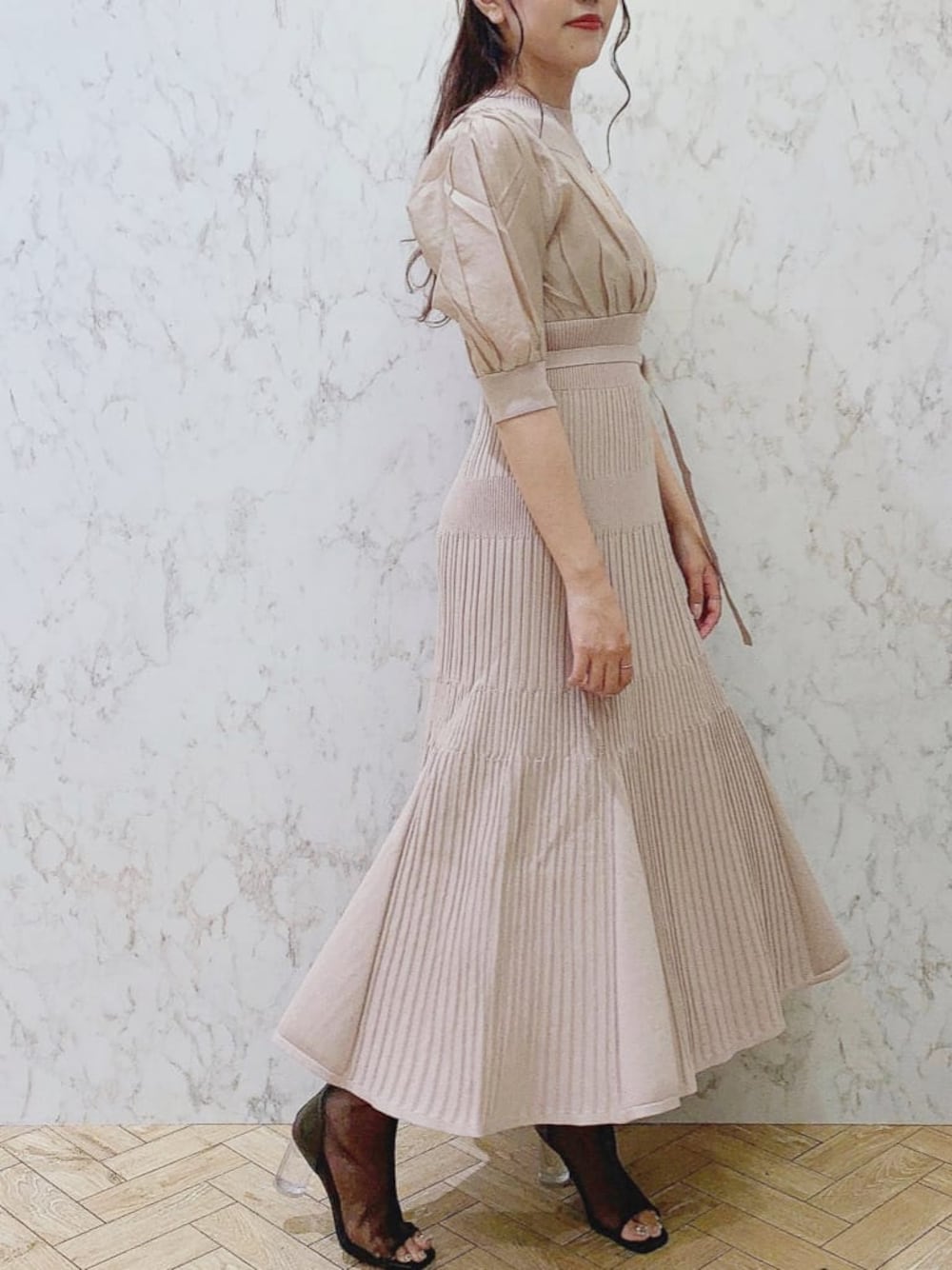airi(dazzlin)のワンピース「異素材ドッキングフレアニットワンピース」を使ったコーディネート