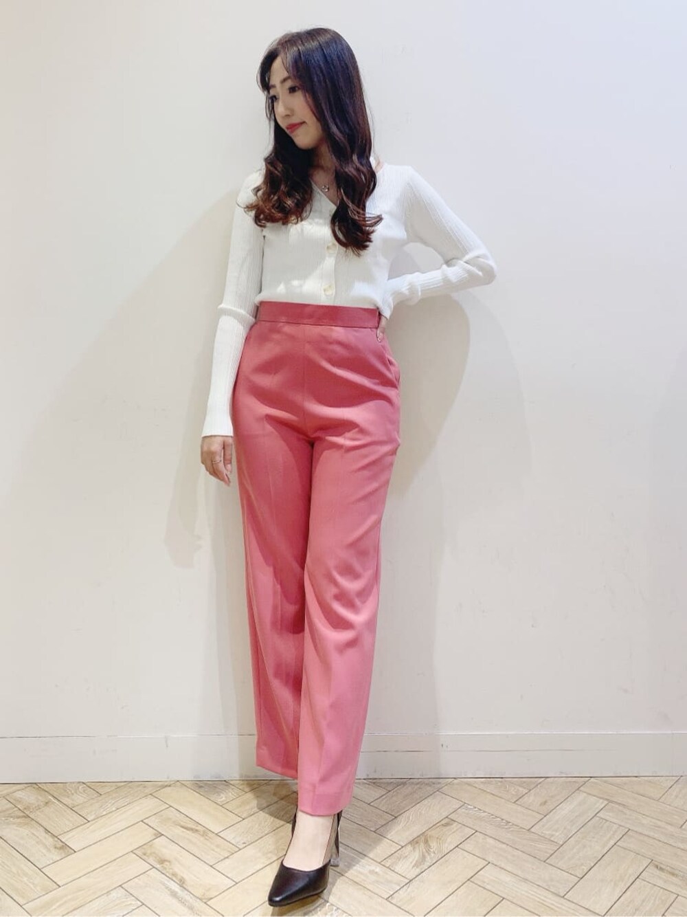 大人綺麗めな春スタイリング︎︎︎︎︎☺︎ トップスは、肩にスリットが入ったリブカーディガン!身体にそうのでトップスとしても着やすいです✨ パンツは、シルエットがとても綺麗でスッキリ見えるストレートパンツ!1本持っておくと便利なアイテムでコーデの幅を広げてくれます♡ ウエストはゴムで楽ちんです♪ トレンチコートは、ケープは取り外しが出来るのでスタイリングに合わせる事が出来ます︎︎︎︎︎☺︎ 綺麗めスタイリングなので外して着用しています!