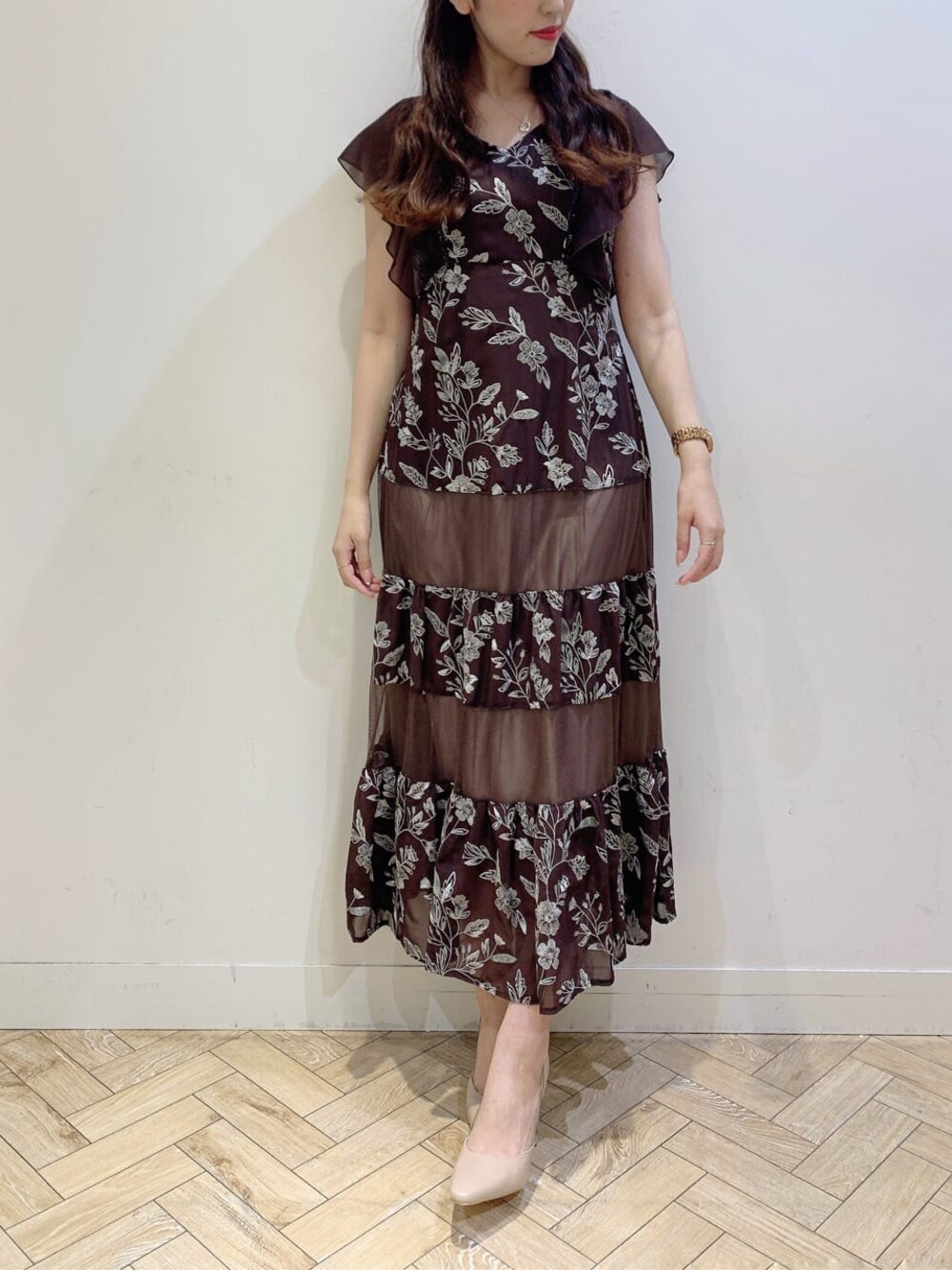 デートなどにもピッタリな綺麗目ワンピース︎︎︎︎︎☺︎ 柔らかいシフォンにオリジナルの刺繍を施したロングワンピース♡ ウエストの位置も高めなのでウエスト回りもスッキリ見え脚長効果抜群です✨ チュールと切り替えたティアードデザインがポイント!お袖はラッフルデザインなので二の腕もカバーしてくれますよ!!