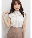 春らしい大人フェミニンコーデ♡ トレンドのボウタイトップス︎︎︎︎︎♡リボンは配色になっているのがポイントで今年らしい印象に︎︎︎︎︎☺︎ リボンは取り外し可能なので、スカーフなどを巻くとより大人っぽさを演出できます! また、インしやすい丈感なのでパンツスタイルで合わせてもバランス良く使って頂けます! スカートは、アシンメトリーのカッティングとシアーの楊柳生地がドッキングされたデザイン♪ 足元はチラッと肌見せなので、ドット柄ですが大人っぽさも演出してくれます♪ フリルのデザインもアクセントに✨ アシンメトリーのデザインなので足元もスッキリ見えやすいです︎︎︎︎︎よ☺︎