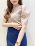 カジュアル過ぎないフェミニンコーデ︎︎︎︎︎☺︎ トップスは、カーディガンとしても使える優秀トップス♡ お袖はシアー感のある素材なので、抜け感があり大人っぽく着やすいです︎︎︎︎︎☺︎ 首元はVなのでデコルテラインもキレイに見えますよ✨ スカートは、ストレッチがきいているのでとても履きやすいマーメイドデザイン♡ デニム素材なので季節問わず使えるアイテムです♪