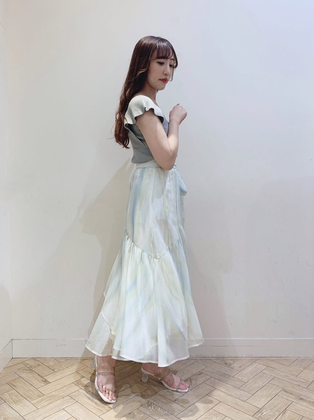 airi(dazzlin)のスカート「楊柳シフォンティアードグラデスカート」を使ったコーディネート