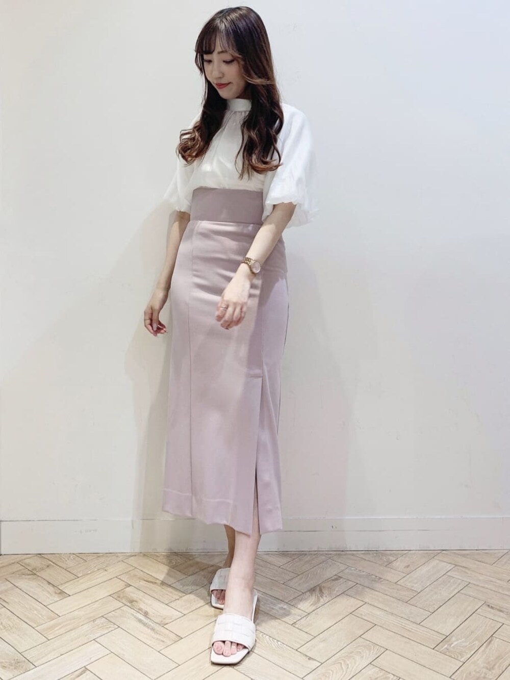 デートなどにもピッタリな大人フェミニンコーデ♡ ブラウスは、透け感がありシアー素材なのでトレンド感も◎!ビックリボンがポイント︎︎︎︎︎☺︎ 前後2WAYなので気分でリボンを前にして着ても可愛いです✨ インナーも付いているので透け感なども気にならず安心!スカートは、ストレッチが効いていて伸縮性もあるのでとても履きやすく、シャーリングゴムが後に入っているので楽ちんです♪