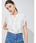 airi(dazzlin)のシャツ/ブラウス「ボリュームラッフルブラウス」を使ったコーディネート