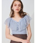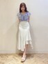 夏らしいフェミニンコーデ! トップスは、チュールが重なっており少しボリュームがあるラッフルデザインなので二の腕もカバーしてくれるのが嬉しいポイント✨ 丈感は短すぎないのでイン、アウトどちらでも着やすいです︎︎︎︎︎☺︎ マーメイドスカートやパンツスタイルなど系統問わずで使いやすいです!
