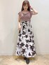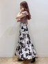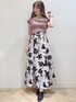 デートなどにもピッタリな大人上品コーデ♡ 毎年大人気のトップスは、前後2WAYなのでスタイリングの幅も広がり雰囲気を変えて着ていただけます︎︎︎︎︎☺︎ お袖はラッフルなので二の腕もカバーしてくれるのが嬉しいポイント♪ スカートは光沢感とフロッキープリントがポイントで目を惹くオリジナルデザイン︎︎︎︎︎☺︎ 太めのウエストベルトと程よいフレアスカートでスッキリ見え、大人っぽく着やすいです♡ ニットなどで合わせると秋冬まで使える優秀アイテムです✨