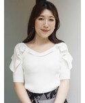 大人上品なフェミニンコーデ︎︎︎︎︎☺︎ トップスは、前後2WAYで着れるラッフルニットのデザイン!!チラッと肌見せが上品さをUP!首元が少し開くデザインなので気になる方はスクエア前がオススメです♪ スカートは、フロッキープリントが大人っぽさを演出してくれます︎︎︎︎︎☺︎ 太めのウエストベルトに程よいフレアなので腰回りをスッキリ見せてくれます♡ そして、ウエストはゴムなので楽ちんです!秋冬はニットをインしても使える優秀スカートです✨